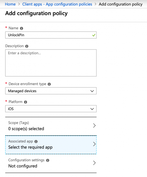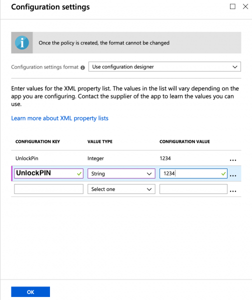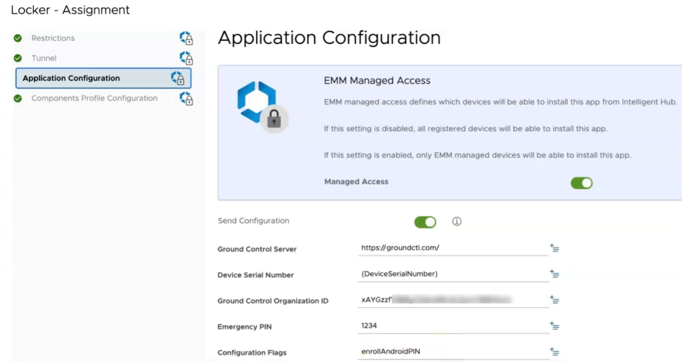 In the following examples, Mobile Access Management uses AppConfig to set the emergency Unlock PIN for the Imprivata Locker app.